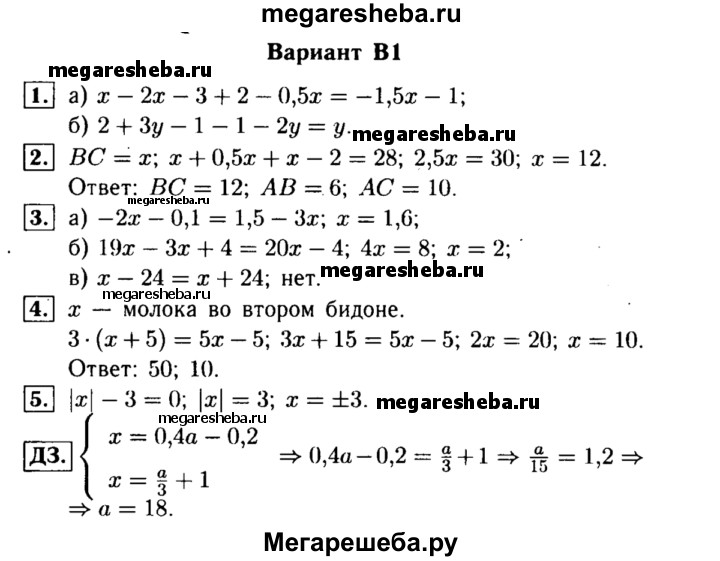 ГДЗ по алгебре 7 класс Ершова самостоятельные и контрольные работы алгебра контрольная работа К-1 - В1