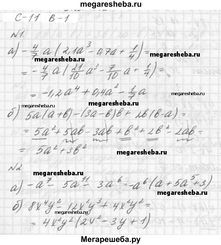 Подробный решебник (ГДЗ) по Алгебре за 7 (седьмой) класс самостоятельные и контрольные работы - готовый ответ алгебра самостоятельная работа С-11 - В1. Авторы учебника: Ершова, Голобородько. Издательство: Илекса 2015.