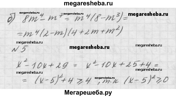 Вариант Б1 1. Упростите выражения: а) -Зх(2 - х) + (3х + 1)(х - 2); б) 3(2х - 1)2 + 12х; в) (х + З)2 - (х - 2)(х + 2). 2. Разложите на множители: а) 36х3 - х; б) 2а2 + 8аb + 8b2; в) а4 - 1. 3. Решите уравнение: (х2 - 1)(х2 + 3) = (х2 + 1)2 + х. 4. Представьте в виде произведения: а) х3 - ху2 + 3у2 - Зх2; б) 8m4 – m7. 5. Докажите, что при любых значениях х выражение принимает положительные значения: х2 – 10x + 29.