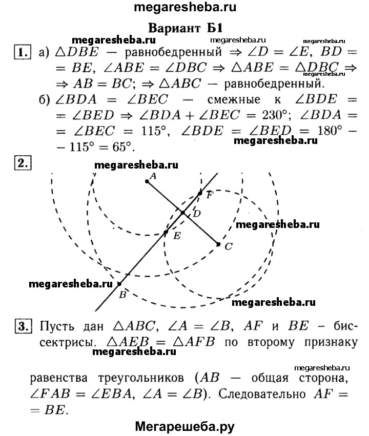ГДЗ по алгебре 7 класс Ершова самостоятельные и контрольные работы геометрия Атанасян контрольная работа КА-2 - Б1