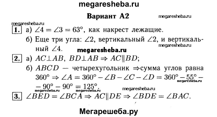 ГДЗ по алгебре 7 класс Ершова самостоятельные и контрольные работы геометрия Атанасян контрольная работа КА-3 - А2