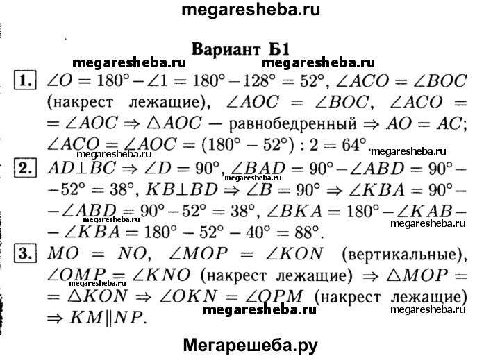 ГДЗ по алгебре 7 класс Ершова самостоятельные и контрольные работы геометрия Атанасян контрольная работа КА-3 - Б1