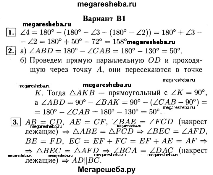 Подробный решебник (ГДЗ) по Алгебре за 7 (седьмой) класс самостоятельные и контрольные работы - готовый ответ геометрия Атанасян контрольная работа КА-3 - В1. Авторы учебника: Ершова, Голобородько. Издательство: Илекса 2015.