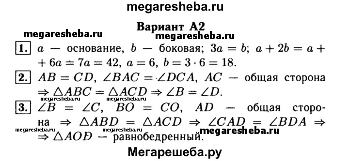 Подробный решебник (ГДЗ) по Алгебре за 7 (седьмой) класс самостоятельные и контрольные работы - готовый ответ геометрия Погорелов контрольная работа КП-2 - А2. Авторы учебника: Ершова, Голобородько. Издательство: Илекса 2015.
