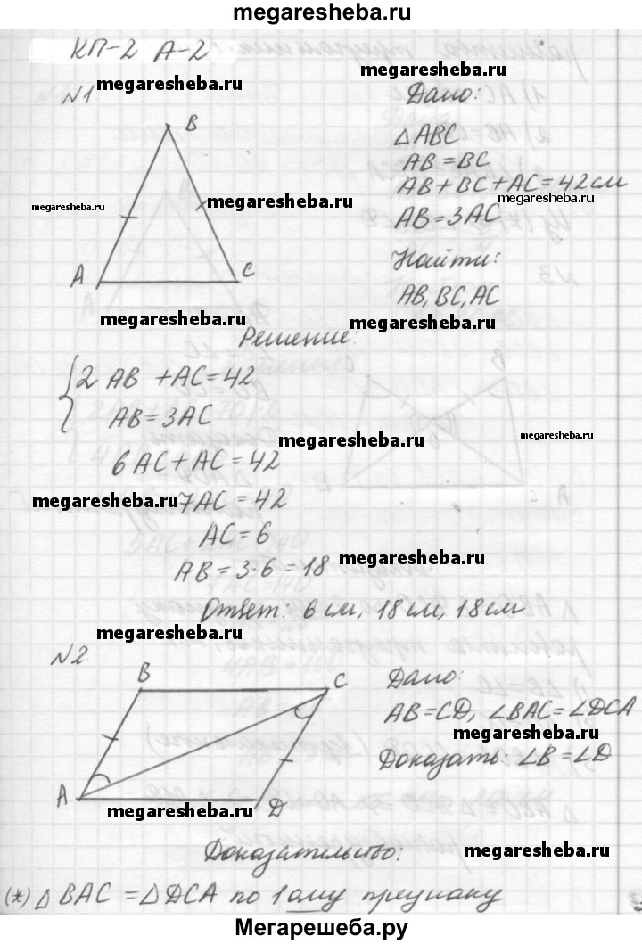 ГДЗ по алгебре 7 класс Ершова самостоятельные и контрольные работы геометрия Погорелов контрольная работа КП-2 - А2