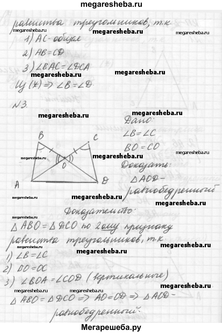Вариант А2 1. Периметр равнобедренного треугольника равен 42 см. Найдите стороны этого треугольника, если боковая сторона в 3 раза больше основания. 2. Дано: АВ = CD; ∠ВАС = ∠DCA. Доказать: ∠B = ∠D. 3. А Дано: ∠В = ∠C; ВО = СО. Доказать: ΔAOD — равнобедренный.