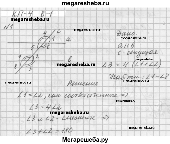 ГДЗ по алгебре 7 класс Ершова самостоятельные и контрольные работы геометрия Погорелов контрольная работа КП-4 - В1