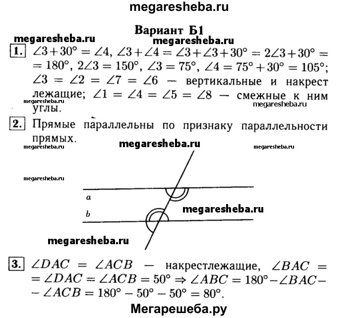 Вариант Б1 1. Дано: a||b; ∠3 меньше ∠4 на 30°. Найти: углы 1-8. 2. Дано: ∠1= ∠2. Доказать: а || b. 3. Дано: AC||BD; ∠ABC = 50° AC – биссектриса ∠BAD Найти: ∠АВС.
