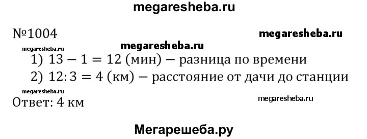 1004. Дачник пришёл от дачи на станцию за 13 мин до отхода поезда. Если бы он на каждый километр тратил на 3 мин больше, то пришёл бы за 1 мин до отправления поезда. Далеко ли от станции живёт дачник?