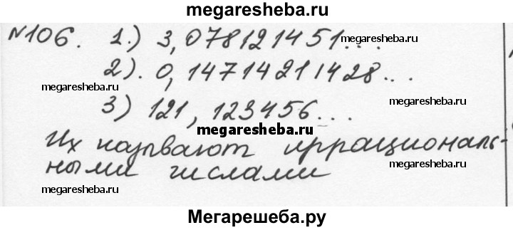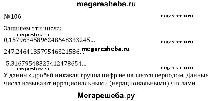 106. Запишите три положительные бесконечные непериодические дроби. Как называют определяемые ими числа?