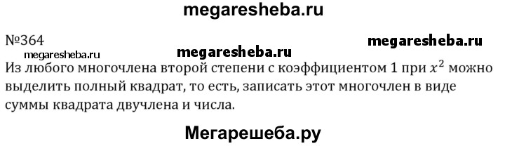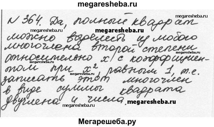 364. Из любого ли многочлена второй степени с коэффициентом 1 при х^2 можно выделить полный квадрат?