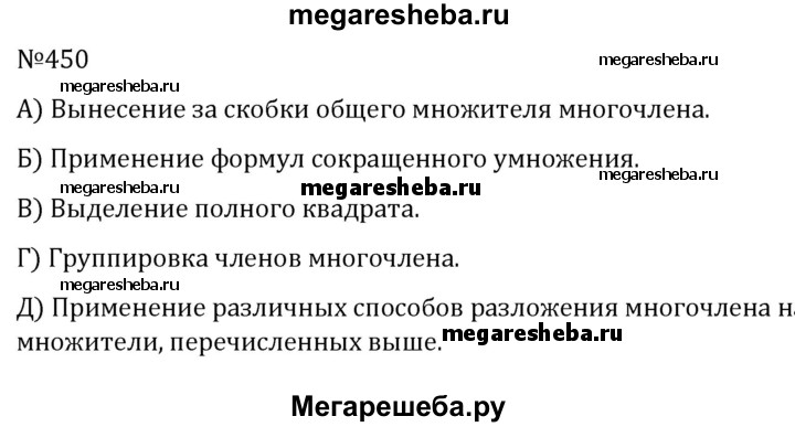 Подробный решебник (ГДЗ) по Алгебре за 7 (седьмой) класс - готовый ответ номер - 450. Авторы учебника: Никольский, Потапов, Решетников, Шевкин. Издательство: Просвещение 2015-2022.