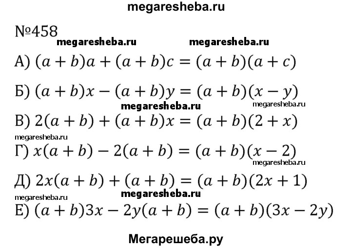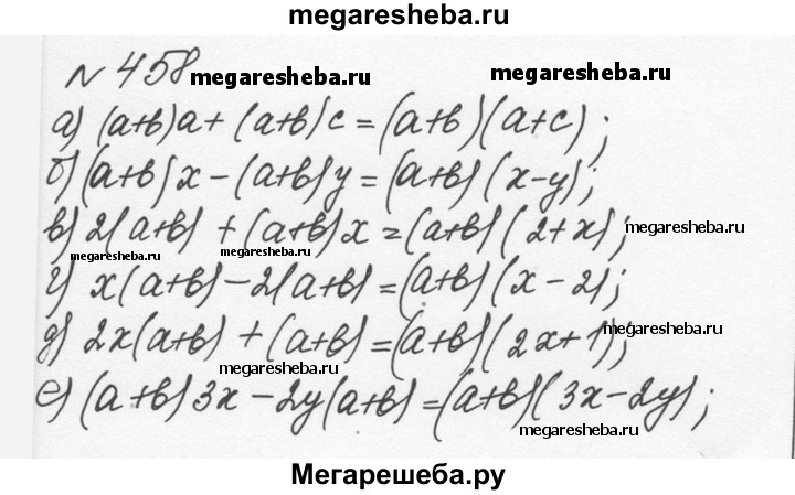 Подробный решебник (ГДЗ) по Алгебре за 7 (седьмой) класс - готовый ответ номер - 458. Авторы учебника: Никольский, Потапов, Решетников, Шевкин. Издательство: Просвещение 2015-2022.