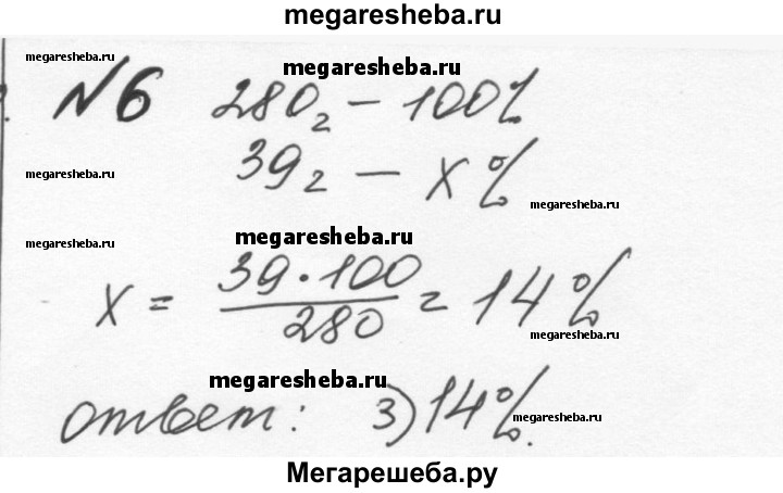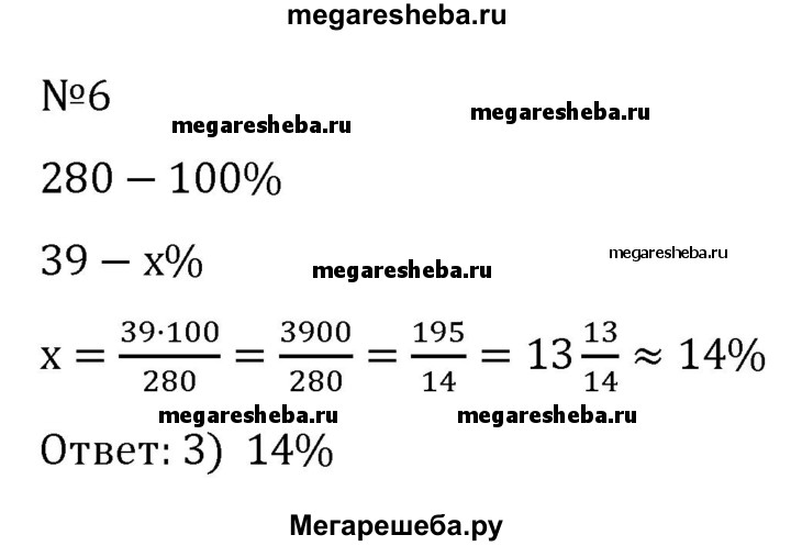 6. Суточная норма потребления углеводов составляет 280 г. Порция омлета в среднем содержит 39 г углеводов. Сколько примерно процентов от суточной нормы потребления углеводов получит человек, съев порцию омлета? 1) 7% 2) 0,7% 3) 14% 4) 0,14%