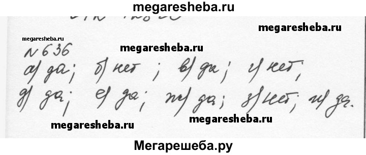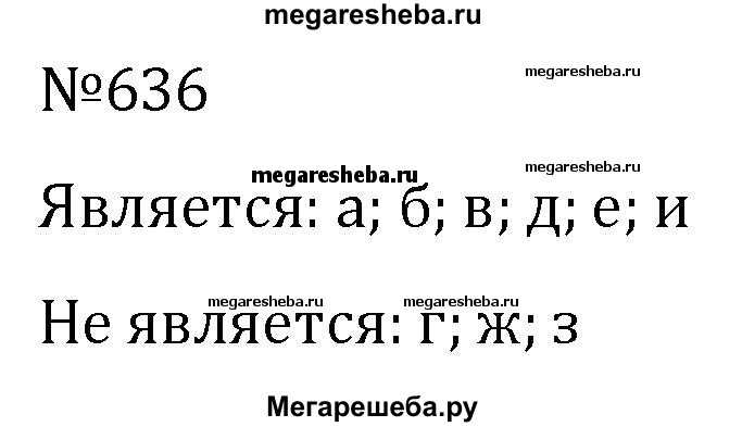 636. Является ли данное уравнение уравнением первой степени с одним неизвестным: а) 4x – 2 = 0; б) 6x = 0; в) 3 + 7x = 0; г) 0 • x = 0; д) -21 + 4x = 0; е) 5/3x – 8/7 = 0; ж) (4,7 – 4 – 0,7)x – 1 = 0; з) 0 • x – 6 = 0; и) 0 = 7x – 2?