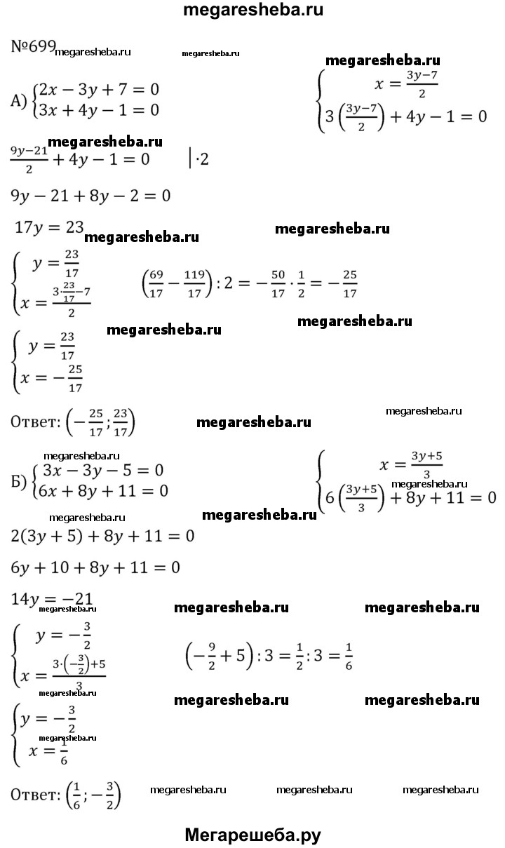 Подробный решебник (ГДЗ) по Алгебре за 7 (седьмой) класс - готовый ответ номер - 699. Авторы учебника: Никольский, Потапов, Решетников, Шевкин. Издательство: Просвещение 2015-2022.