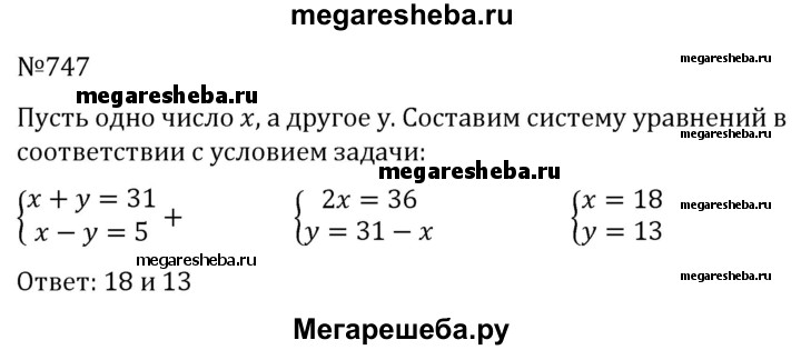 Подробный решебник (ГДЗ) по Алгебре за 7 (седьмой) класс - готовый ответ номер - 747. Авторы учебника: Никольский, Потапов, Решетников, Шевкин. Издательство: Просвещение 2015-2022.