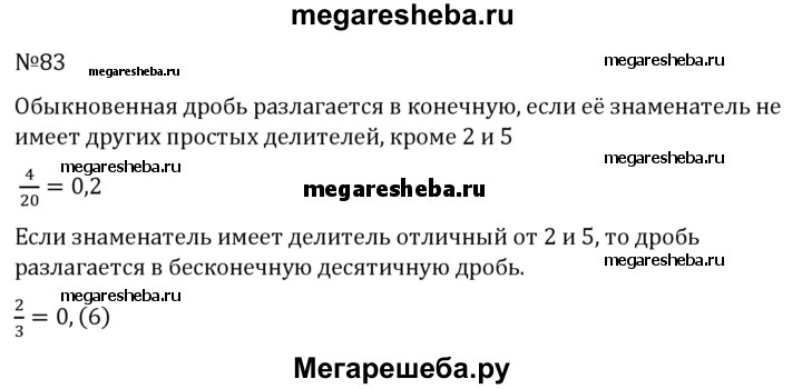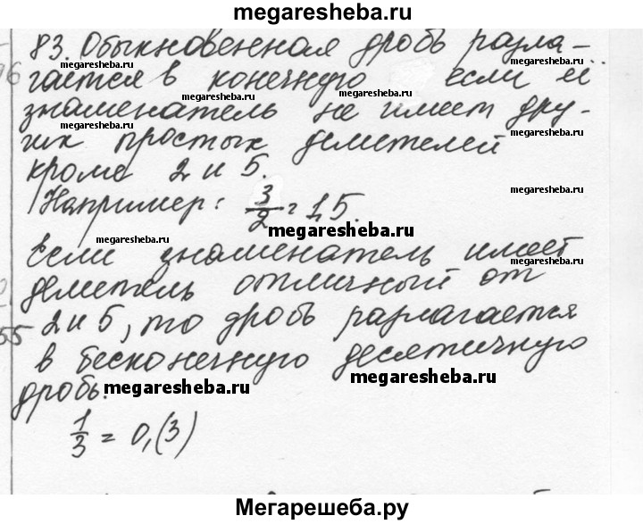 83. Как узнать, разлагается обыкновенная дробь в конечную или же в бесконечную десятичную дробь? Приведите примеры.