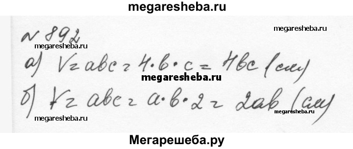 892. Запишите объём прямоугольного параллелепипеда, если длины его рёбер: а) 4 см, b см, с см; б) а см, b см, 2 см.