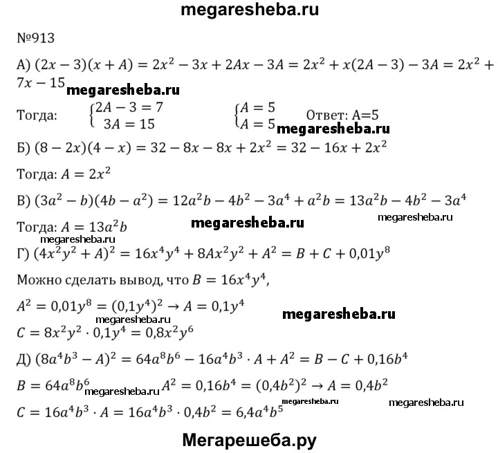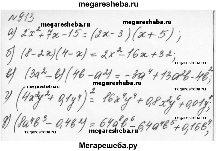 Подробный решебник (ГДЗ) по Алгебре за 7 (седьмой) класс - готовый ответ номер - 913. Авторы учебника: Никольский, Потапов, Решетников, Шевкин. Издательство: Просвещение 2015-2022.