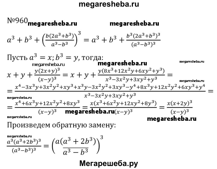 Подробный решебник (ГДЗ) по Алгебре за 7 (седьмой) класс - готовый ответ номер - 960. Авторы учебника: Никольский, Потапов, Решетников, Шевкин. Издательство: Просвещение 2015-2022.