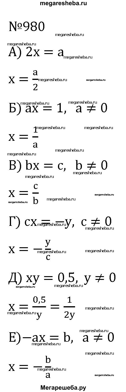 Подробный решебник (ГДЗ) по Алгебре за 7 (седьмой) класс - готовый ответ номер - 980. Авторы учебника: Никольский, Потапов, Решетников, Шевкин. Издательство: Просвещение 2015-2022.