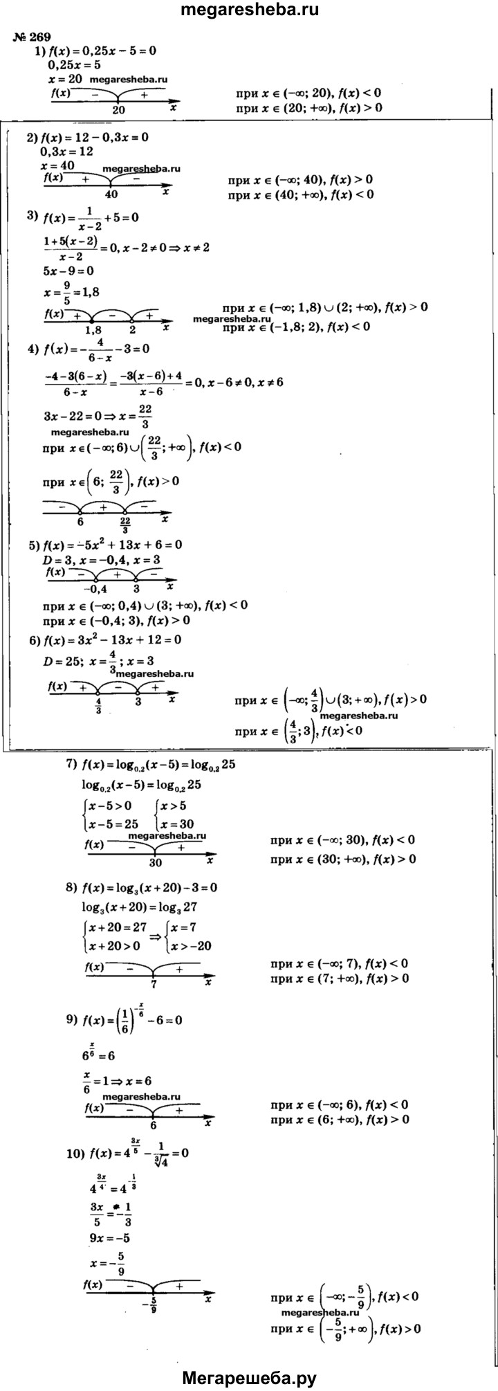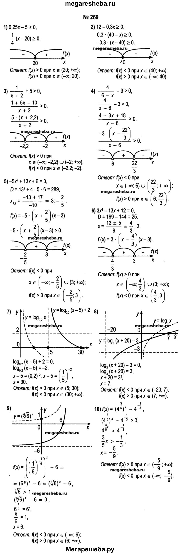 269. Укажите промежутки, на которых принимает положительные (отрицательные) значения функция, заданная формулой: