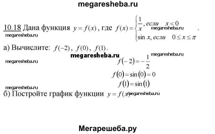 10.18. Дана функция у = f(x), где f(x) = а) Вычислите: f(-2), f(0), f(1); б) постройте график функции у = f(x) в) прочитайте график функции у = f(x).