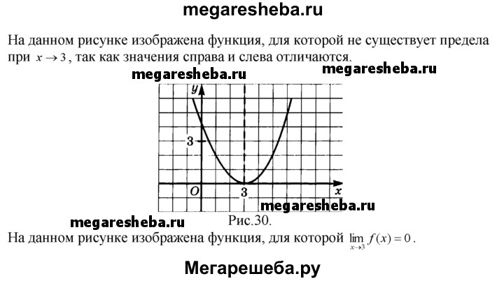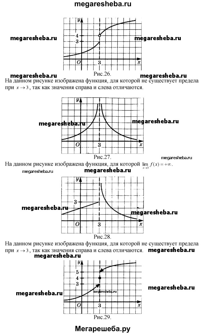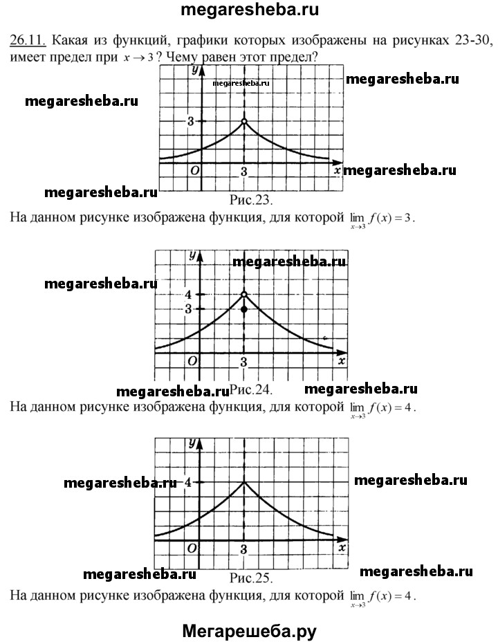 26.11. Какая из функций, графики которых изображены на рисунках 23—30, имеет предел при х—>3? Чему равен этот предел?