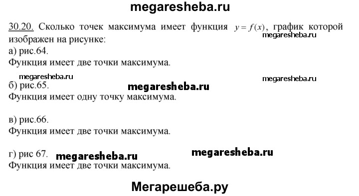30.20. Сколько точек максимума имеет функция у = f(х), график которой изображен на рисунке: а) рис. 64; б) рис. 65; в) рис. 66; г) рис. 67.