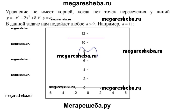 31.14. а) Постройте график функции у = -х4 + 2х2 + 8. б) При каких значениях параметра а уравнение 2х + 8 = а не имеет корней?