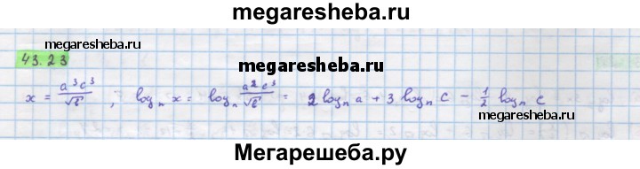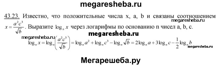 43.23. Известно, что положительные числа х, а, b и с связаны соотношением x =a2c3/√b . Выразите lognx через логарифмы по основанию n чисел а, b, с.