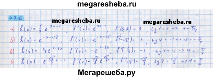 47.6. Найдите угол, образованный касательной к графику функции у = h(x) с положительным направлением оси абсцисс в точке с абсциссой х0: