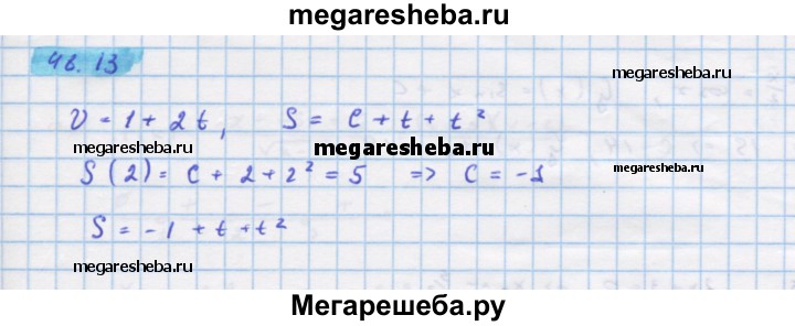 48.13. Точка движется по координатной прямой, ее скорость задана формулой v = 1 + 2t, t — время движения. Найдите закон движения, если известно, что в момент времени t = 2 координата точки равнялась числу 5.