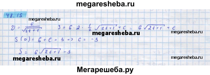 48.15. Скорость движения точки по координатной прямой задана формулой v = 6 / √2е + 1, t — время движения. Найдите закон движения, если s(0) = 3.