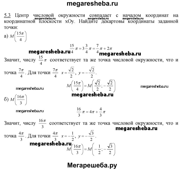 Центр числовой окружности совпадает с началом координат на координатной плоскости хОу. Найдите декартовы координаты заданной точки: