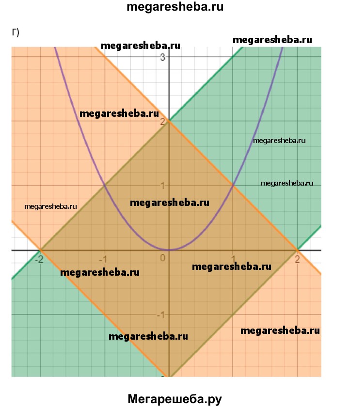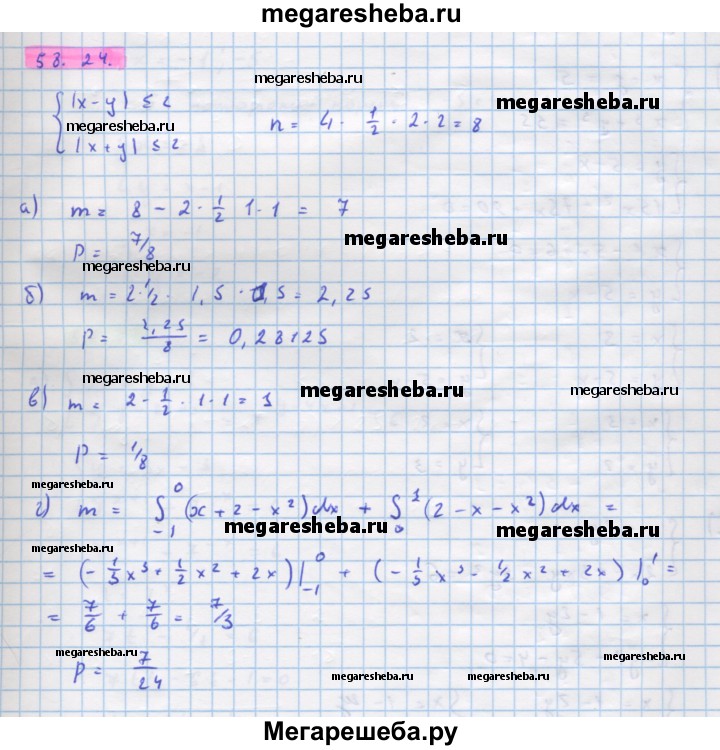 58.24. а) Случайным образом выбирают одно из решений системы неравенств Найдите вероятность того, что выбранная точка расположена: а) ниже прямой у = 1; б) выше прямой у = 0,5; в) правее прямой х = 1; г) выше параболы у = х2.