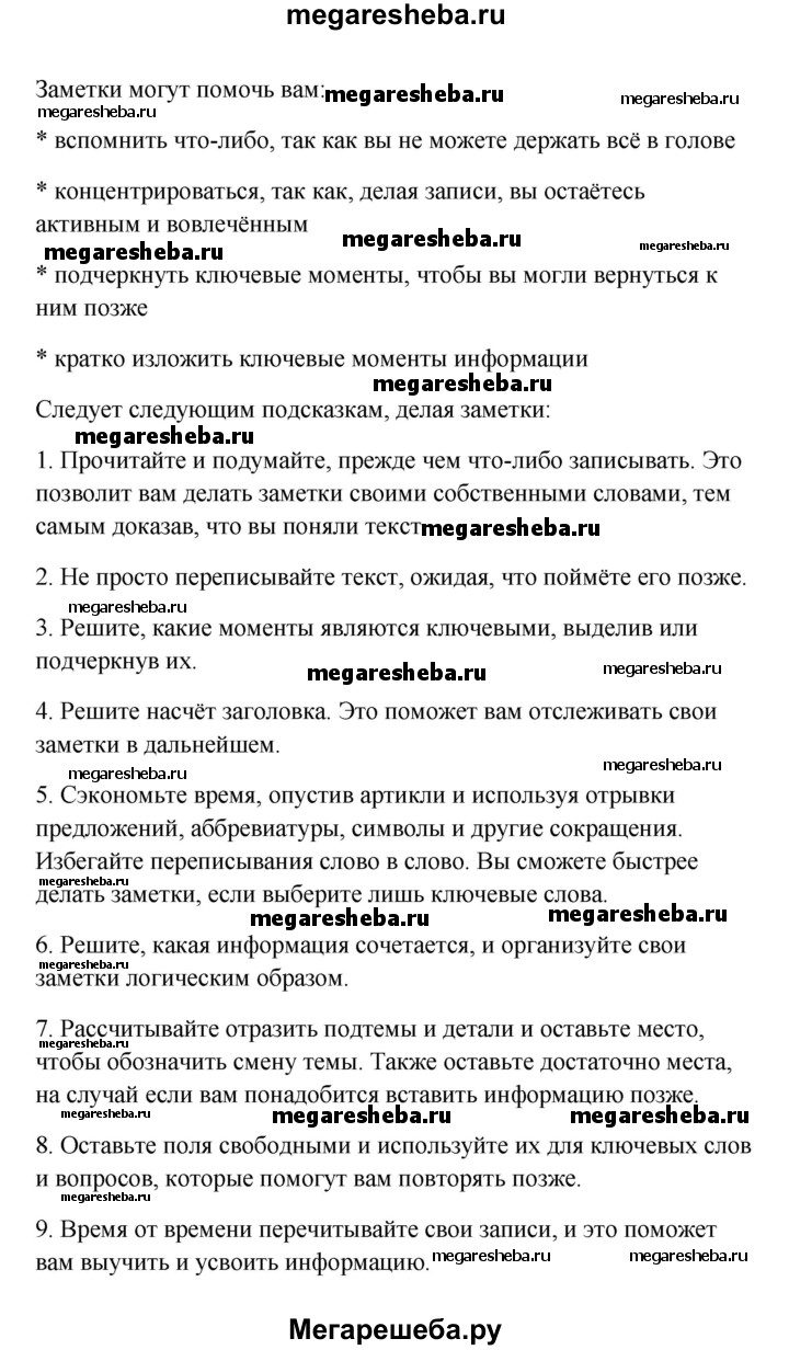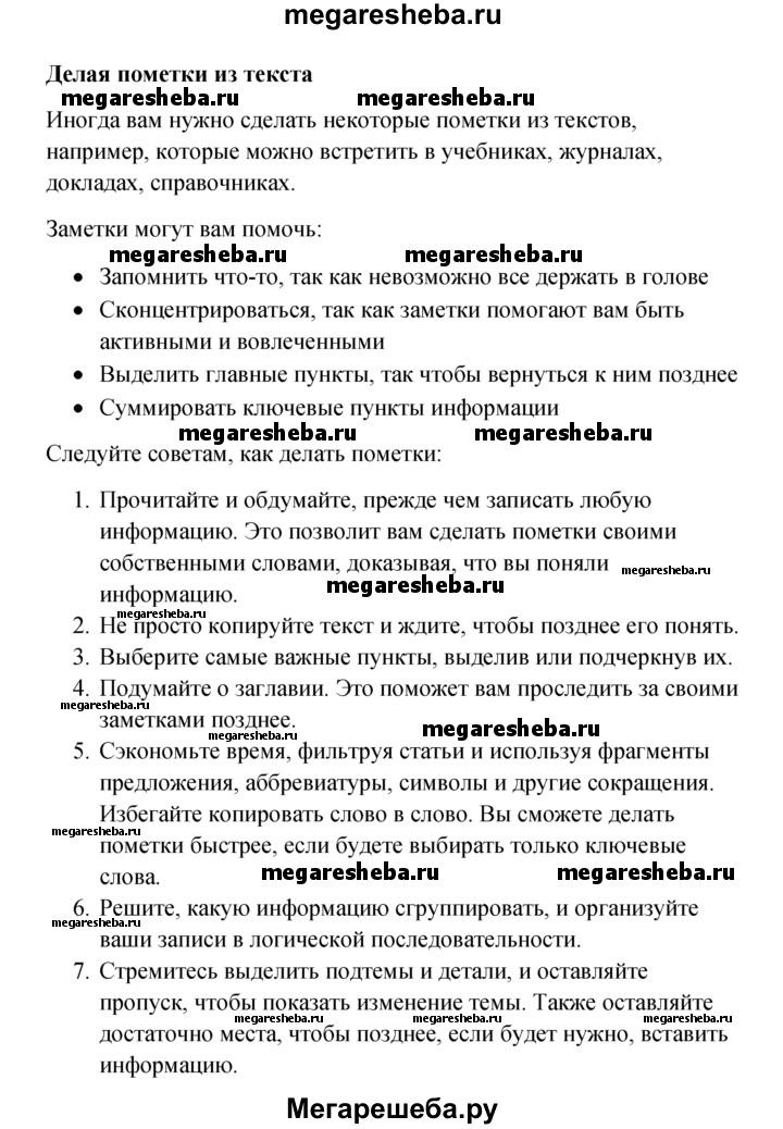 Решебник №1 к старому учебнику / appendix 2 / taking notes from text