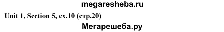 Подробный решебник (ГДЗ) по Английскому языку за 5‐6 (пятый‐шестой) класс - готовый ответ unit 1 5 section - 10. Авторы учебника: Биболетова, Денисенко, Трубанева. Издательство: Титул 2015.