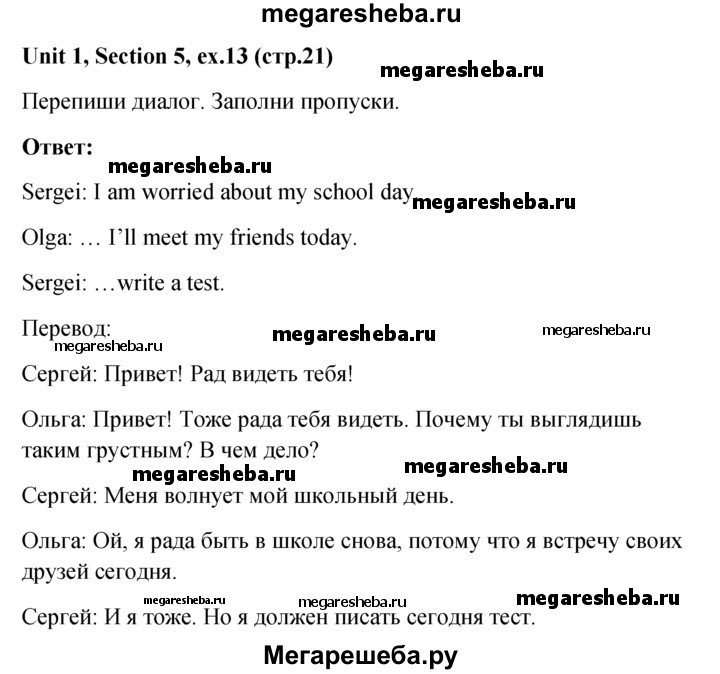 ГДЗ по английскому языку 5‐6 класс Биболетова unit 1 5 section - 13