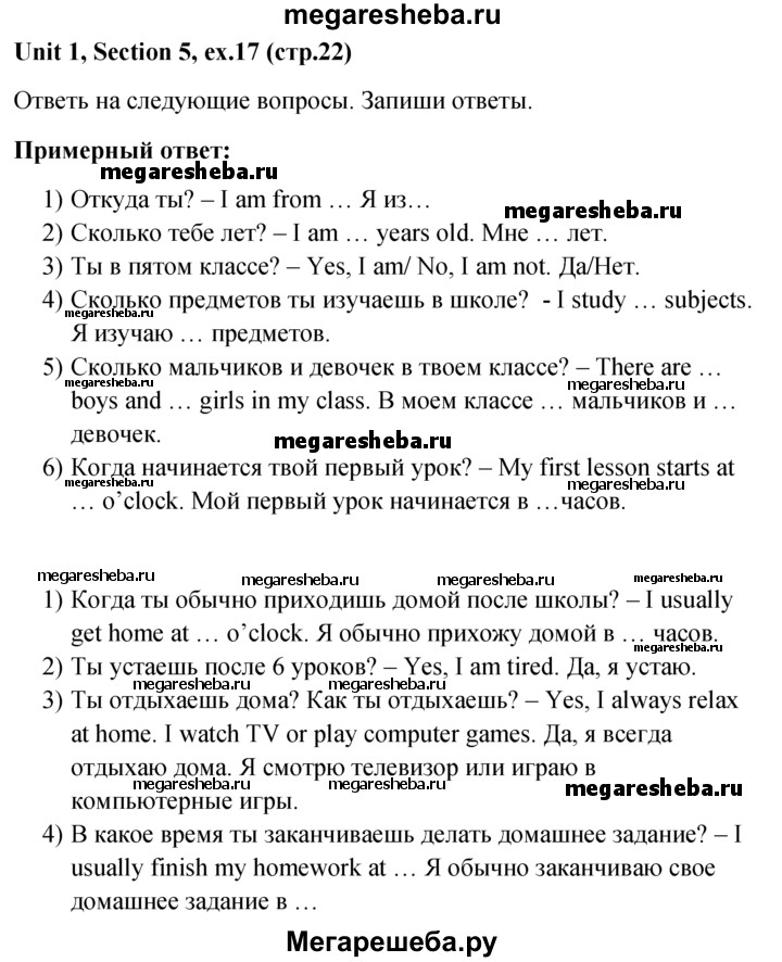 ГДЗ по английскому языку 5‐6 класс Биболетова unit 1 5 section - 17