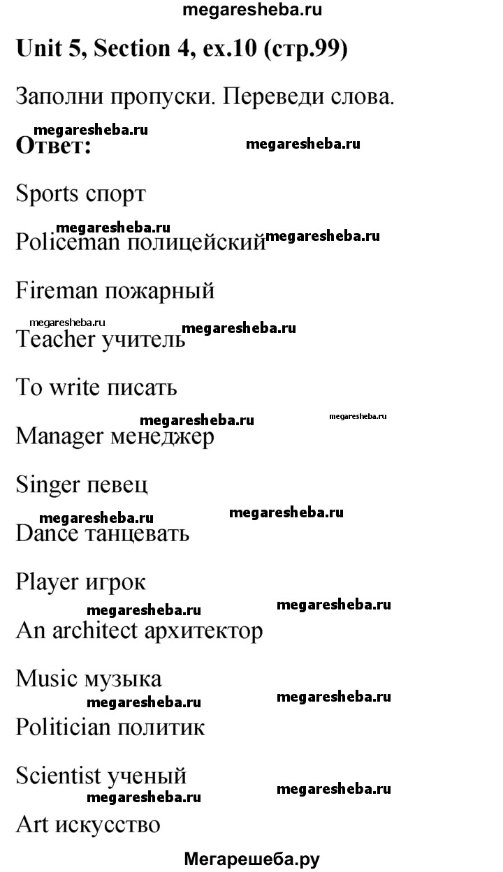 ГДЗ по английскому языку 5‐6 класс Биболетова unit 5 4 section - 10