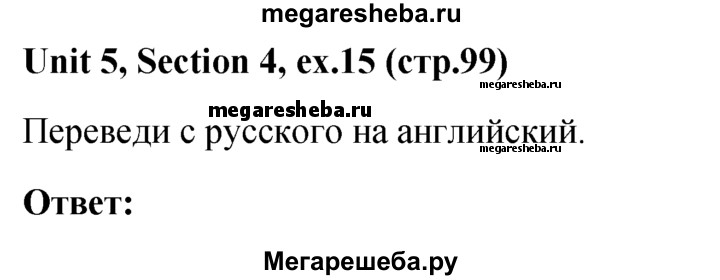 Подробный решебник (ГДЗ) по Английскому языку за 5‐6 (пятый‐шестой) класс - готовый ответ unit 5 4 section - 15. Авторы учебника: Биболетова, Денисенко, Трубанева. Издательство: Титул 2015.