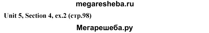 Подробный решебник (ГДЗ) по Английскому языку за 5‐6 (пятый‐шестой) класс - готовый ответ unit 5 4 section - 2. Авторы учебника: Биболетова, Денисенко, Трубанева. Издательство: Титул 2015.