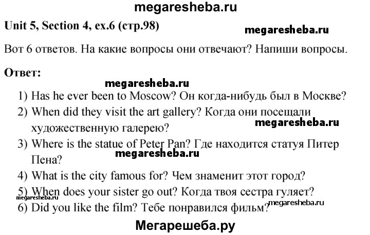 ГДЗ по английскому языку 5‐6 класс Биболетова unit 5 4 section - 6