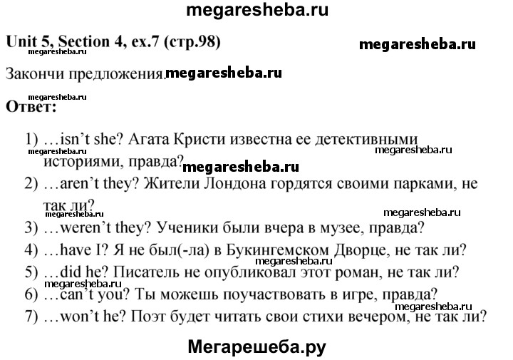 ГДЗ по английскому языку 5‐6 класс Биболетова unit 5 4 section - 7