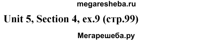 Подробный решебник (ГДЗ) по Английскому языку за 5‐6 (пятый‐шестой) класс - готовый ответ unit 5 4 section - 9. Авторы учебника: Биболетова, Денисенко, Трубанева. Издательство: Титул 2015.