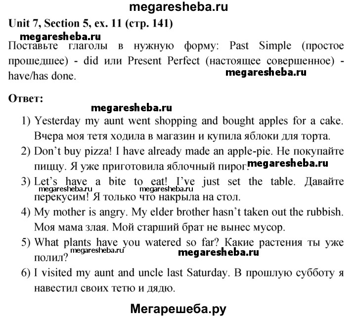 Подробный решебник (ГДЗ) по Английскому языку за 5‐6 (пятый‐шестой) класс - готовый ответ unit 7 5 section - 11. Авторы учебника: Биболетова, Денисенко, Трубанева. Издательство: Титул 2015.