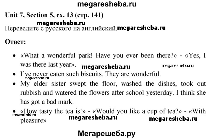Подробный решебник (ГДЗ) по Английскому языку за 5‐6 (пятый‐шестой) класс - готовый ответ unit 7 5 section - 13. Авторы учебника: Биболетова, Денисенко, Трубанева. Издательство: Титул 2015.