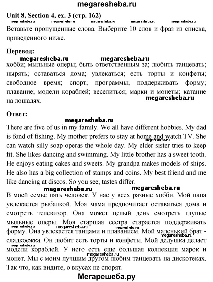 Подробный решебник (ГДЗ) по Английскому языку за 5‐6 (пятый‐шестой) класс - готовый ответ unit 8 4 section - 3. Авторы учебника: Биболетова, Денисенко, Трубанева. Издательство: Титул 2015.